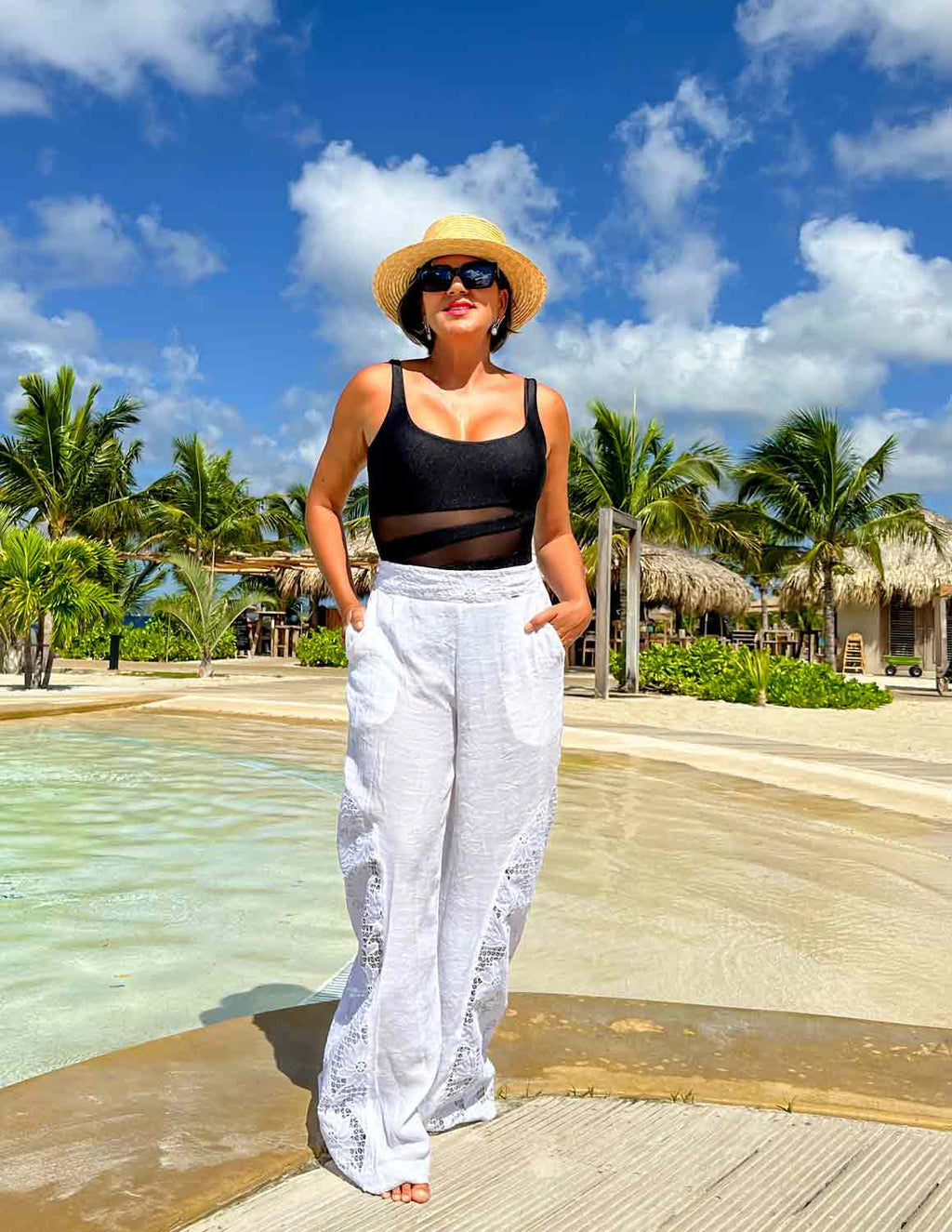 A Calça Fluída Cós Renda é ideal para mulheres que querem um look sofisticado à beira mar. Combina perfeitamente com bodies, maiôs e biquínis, oferecendo versatilidade para criar diferentes looks, seja na praia ou na cidade. Explore sua criatividade e sinta-se linda com Kalini.