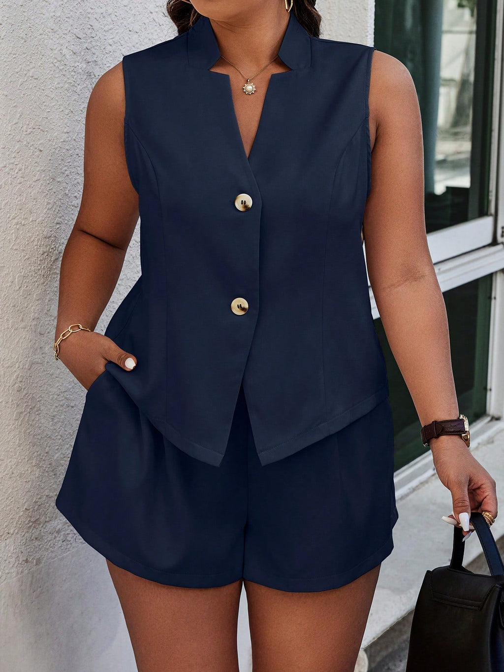 Conjunto Feminino Colete E Shorts De Tamanho Grande Sara. Plus Size