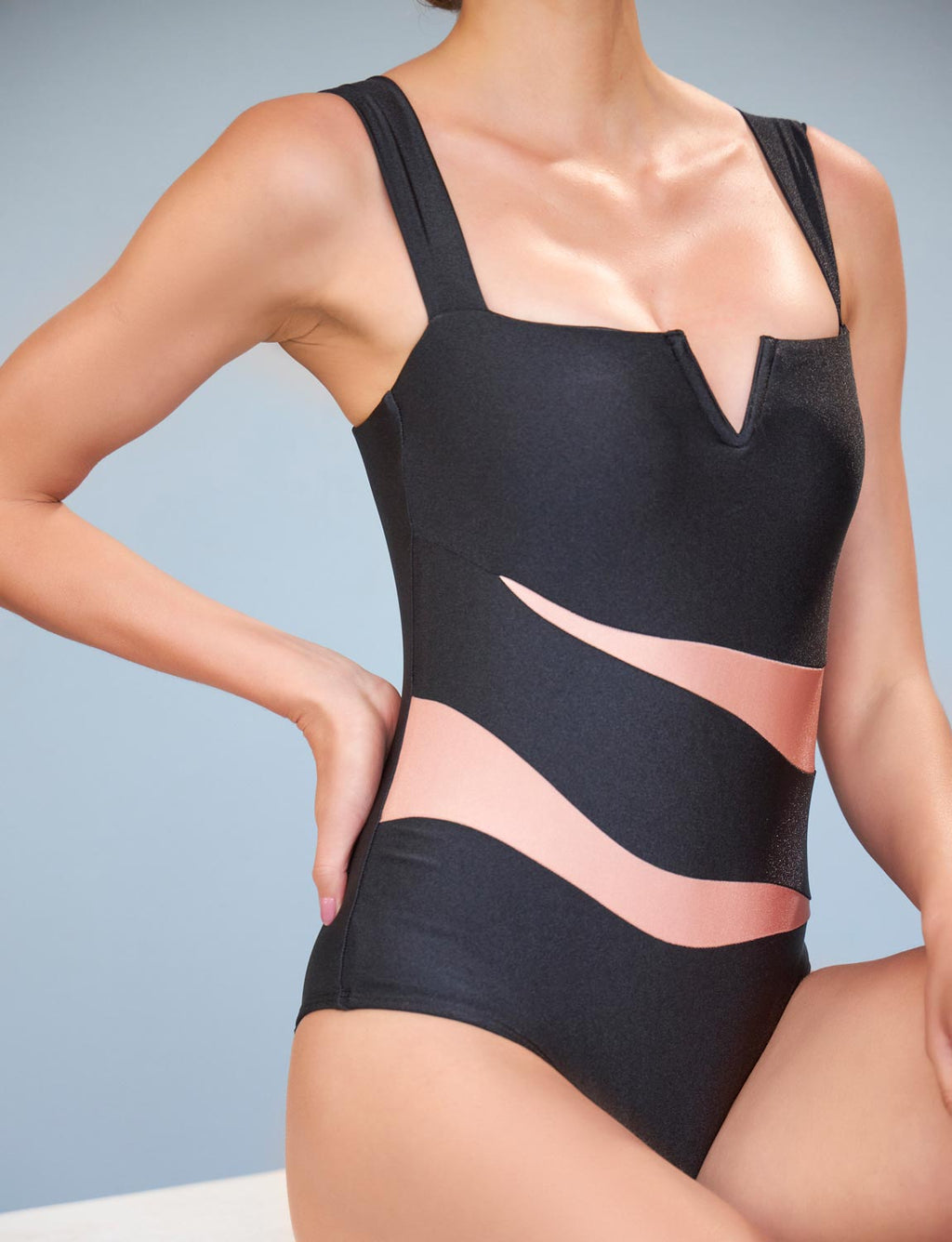 A proposta do modelo Maiô Body Aro V Resort Aisha é combinar a moda praia e o glamour da moda urbana com peças elegantes, explorando a liberdade dos movimentos! O modelo é confeccionado em tecido Lycra, um decote elegante e com detalhes que dão um charme sofisticado a peça, modelando e definindo a silhueta. Possui recorte e bojo estruturado em aro V para dar sustentação e valorização aos seios.