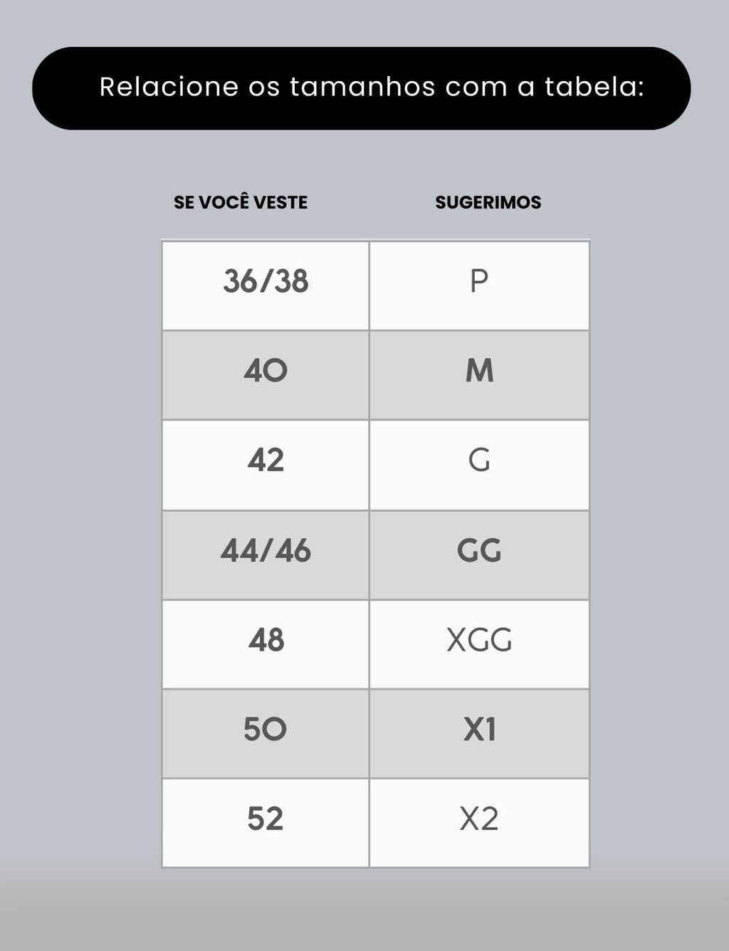 Sugestão de tamanho do maiô body aro v resort creta para diversos tipos de corpo.