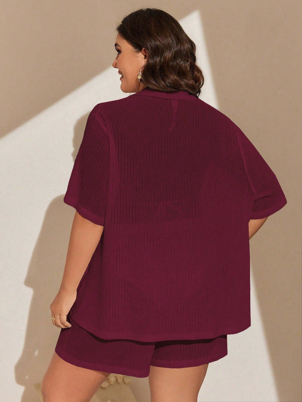 Conjunto de 2 Peças Feminino de Praia com Modelagem Solta e Shorts de Cobertura - Dália. Plus Size